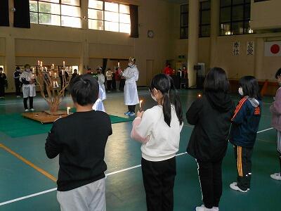 おいしい昼食をはさみ、午後からは、キャンドルのつどいでした。火の巫女や火の守担当の活躍もあり、厳粛な中、無事に終えることができました。そのときの様子をはじめ、このむかばき体験学習を写真で紹介していますので、ごゆっくりご覧ください。