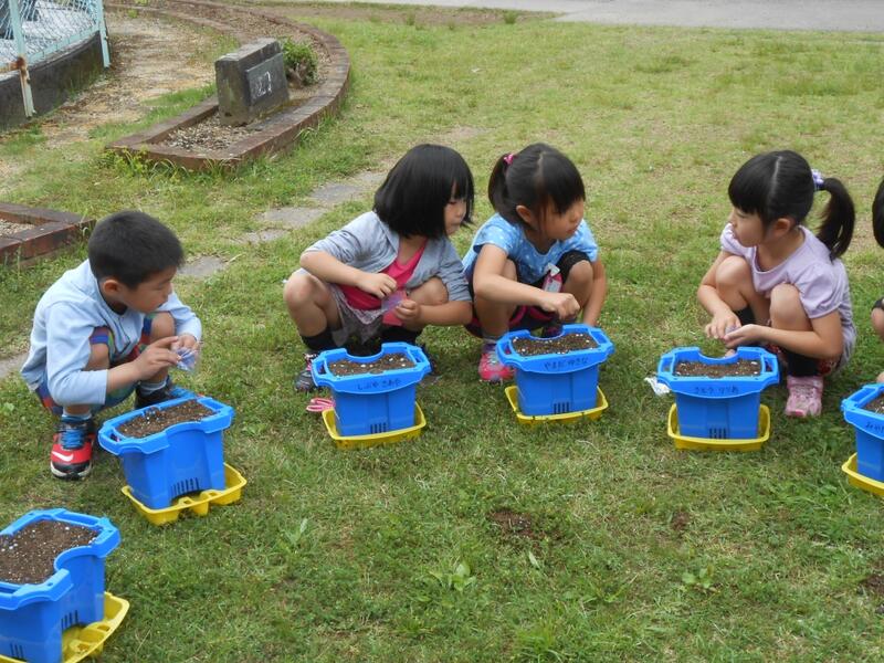 「早く芽が出てほしいな ♪ 」 「きれいな花がさいてほしいな ♪ 」