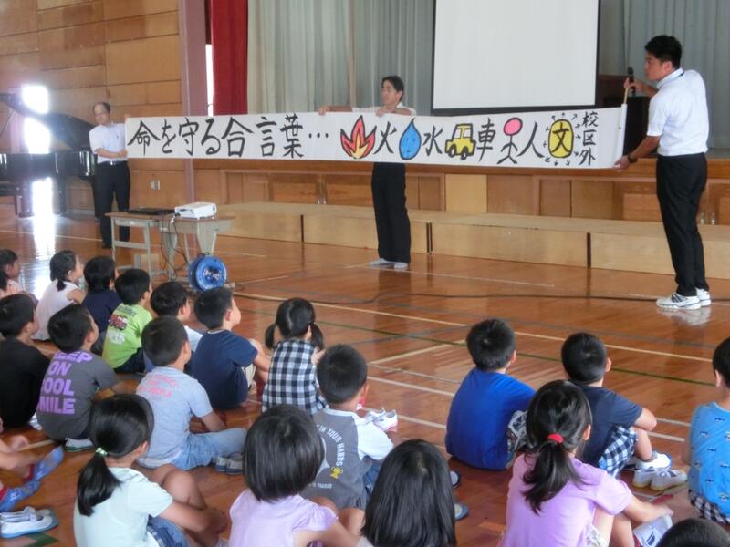 担当からは「命を守る合言葉 火・水・車・人・校区外」に気をつけて過ごすよう話がありました。