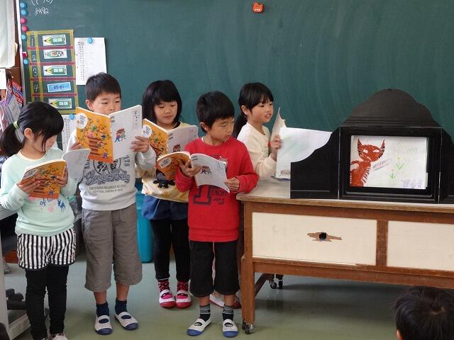 自分たちで絵を描いて、「相手に気持ちが伝わるように読む」というのをめあてに紙芝居をしました。