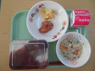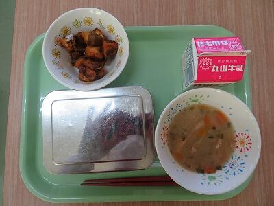 ふぶきじる とりのてりやき そえやさい むぎごはん 牛乳