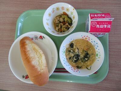 トッポギキムチスープ ブロッコリーのオイスターソース炒め マヨネーズパン 牛乳