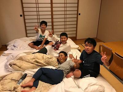 夜は各部屋で楽しくすごし、その後ぐっすりと眠ったようで、元気にしています。朝食もしっかりと食べました。