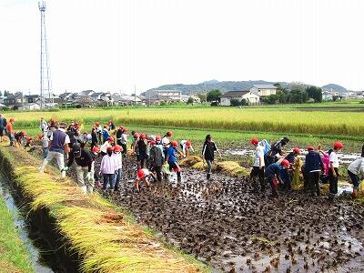 また、今回の体育発表会では、PTA執行部と専門部長の皆様が受付を担当してくださり、大変助かりました。保護者の皆様方におかれましては、児童への温かいご声援、お弁当作り等、本当にありがとうございました。参観に対しても、検温、マスク着用、消毒、間隔をあけての感染等、快く協力してくださいました。本当にありがとうございました。心より感謝いたします。稲刈り