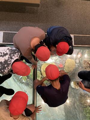 水族館では、ジンベイザメやたくさんの魚などに興味津々。