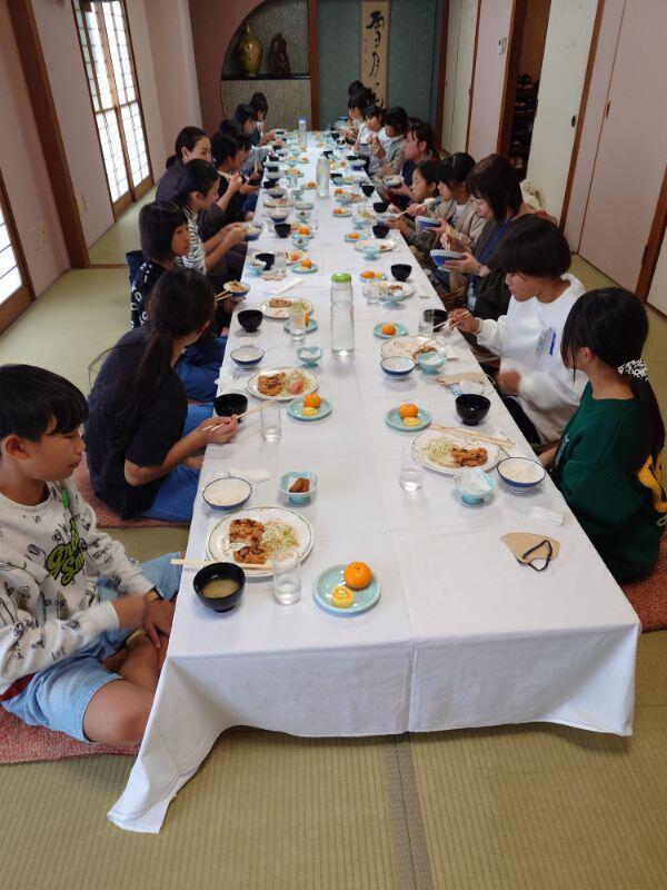一日活動しての食事で、みんなで食べるとさらにおいしくなっていました。