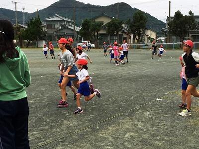 運営委員会児童の企画、準備で本日10月11日(木)朝から始まった『友だちふやしたいむ』。今朝は1年生と6年生が「手つなぎおに」をして交流を深めました。6年生に手をひかれながら、一生懸命走っておにから逃げる1年生。真剣な表情ながらも、活動を楽しんでいる様子が見られました。見ている方も、思わず笑みがこぼれる微笑ましい光景でした。