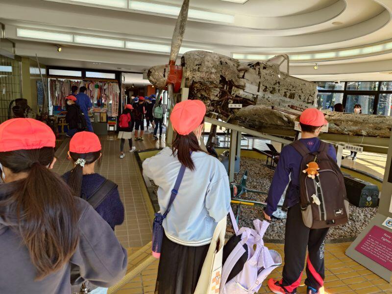 講話では、子どもたちにも分かりやすく説明していただきました。また、館内の見学でも資料を一つ一つじっくりと見ていて、戦争の悲惨さと平和の尊さを感じていました。