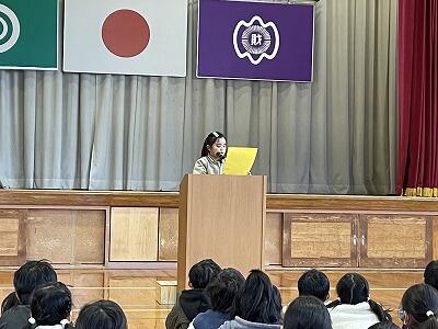 1年生と3年生の作文発表は、2学期にがんばったことをしっかり振り返り、次に生かそうとする前向きな内容でした。