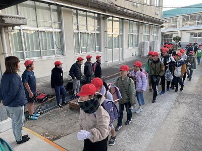 今日は、遠足の日でしたが、出発前の1校時、体育館で6年生と下級生とのお別れ集会が行われました。