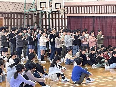 各学年から、6年生に向けてメッセージや歌、リコーダー演奏、ダンスなどが送られました。