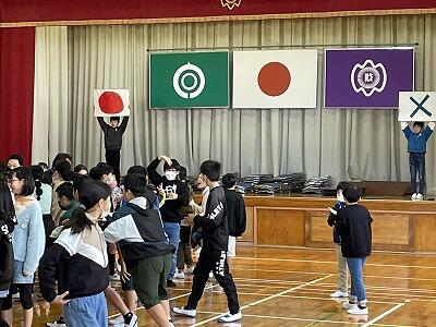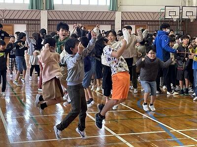 そのあとは、運営委員会5年生が主催する「○×ゲーム」で、盛り上がりました。喜びのあまり、ジャンプする子が続出!