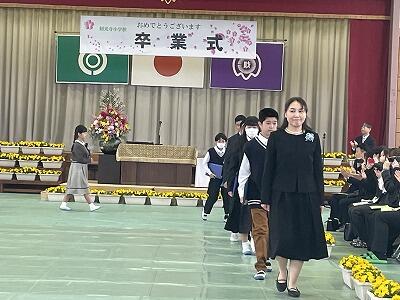 当日はあいにくの雨でしたが、たくさんの来賓や保護者、職員、5年生に見守られながら、6年生は立派な姿で卒業式を終えました。