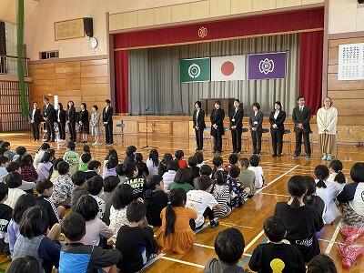 最後は校歌斉唱。元気に校歌を歌う財っ子!