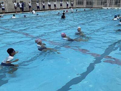 水着の時とは違って動きづらさがあることに戸惑ったり、ペットボトルで浮くことができることに驚いたりしていた子どもたちでした。