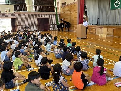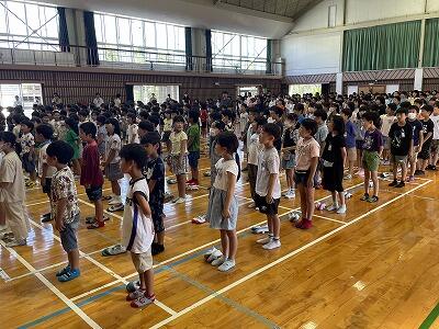 子どもたちにとっては、コロナ対策や熱中症対策の影響もあり、体育館で全員集まってのこのような式は実に4年ぶりです。