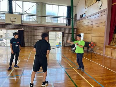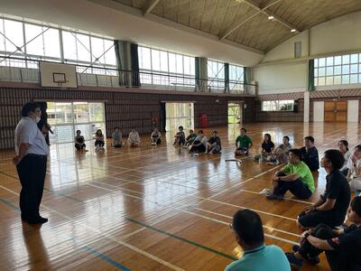 登校日の午後に、体育館で職員対象の不審者対応訓練を行いました。