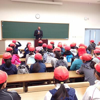 10日(木)5年生は、宮崎国際大学で1日体験入学を行いました。大学での授業を通して、英語学習への興味・関心を高めるとともに、児童の英語力の基礎を養うことを目的としています。