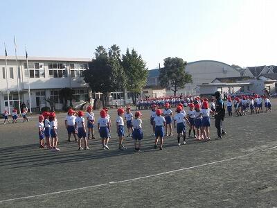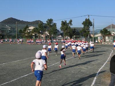 さて、本校では朝から体力作りのために、運動場を周回する運動が行われました。