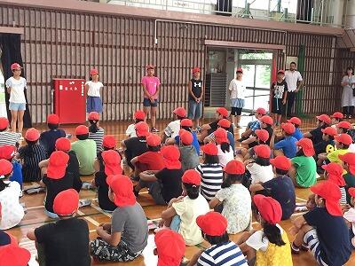 7月20日(金)本日で1学期終了です。1校時、まずは「命について考える集会」が行われました。11年前、伊勢ヶ浜での水難事故で亡くなったマス・エンダンさんのことについて、校長先生がお話をされました。「命を守ること」=「ルールを守ること」、そして離岸流の怖さについてのお話があり、児童は真剣な表情で聞き入っていました。