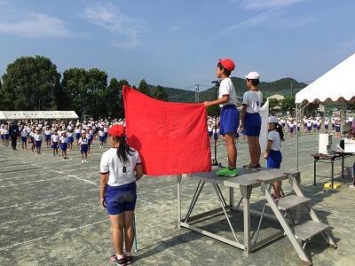 その後の団長あいさつ、リーダーあいさつ、各団のかけ声は迫力があって、運動会にかける全校児童の思いが伝わってきました。これから、当日までどんな火花が散るのか、とても楽しみです。
