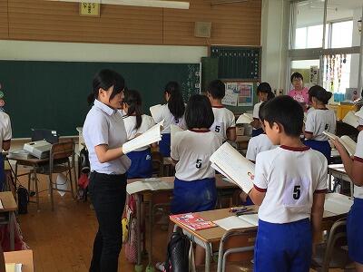 続いて、終業式。校長先生から、「今年の夏は、大人になっても思い出せるような”夏”になるように、いろんなことにチャレンジしよう!」というお話がありました。そして、2年生と4年生の代表児童が1学期の振り返り、夏休みのめあてについて、すばらしい発表をしてくれました。