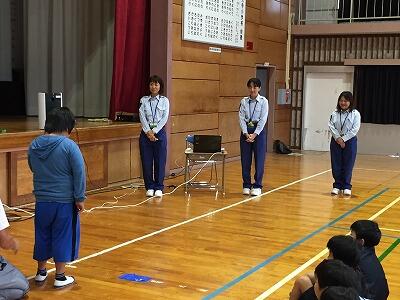 全校朝会終了後、6年生教室2クラスでは、この春本校を卒業して、県立五ヶ瀬中等教育学校に進学した2人の卒業生による学校紹介がありました。2人とも一段と成長しており、説明も質問への受け答えも落ち着いていてさすがでした。きっと、これを機会に、五ヶ瀬中等教育学校に憧れを強くした6年生がいるはずです。