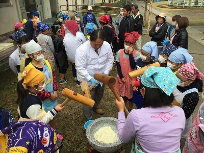 2校時からは「もちつき」「団子づくり」。米作り指導の治田さんにも来校していただき、保護者の皆さん、おじいちゃん、おばあちゃん方にもお手伝いいただいて、にぎやかにもちをつきました。最近ではなかなかできない貴重な体験、私たち職員もたくさんのことを学ぶことができました。