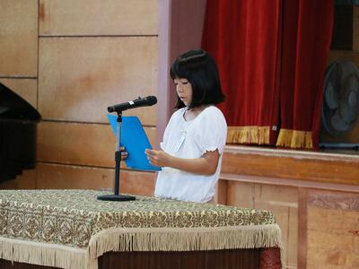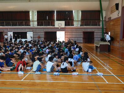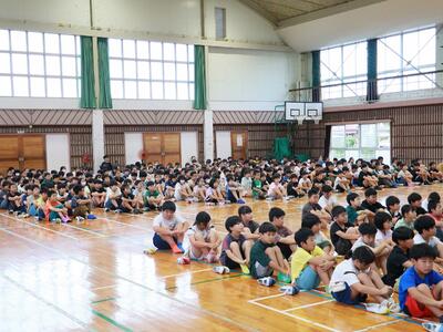 暑い日が続いた1学期。無事、終業式を迎えました。発表した2人の児童も1学期にがんばったこと、そして、自分の思い描く夏休みの過ごし方を発表してくれました。6月後半から海や川での水難事故、そして交通事故などが全国的に多く報道されました。いのちを大切にする夏休みであってほしいと思います。