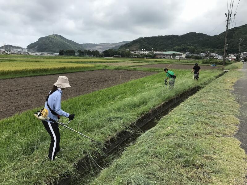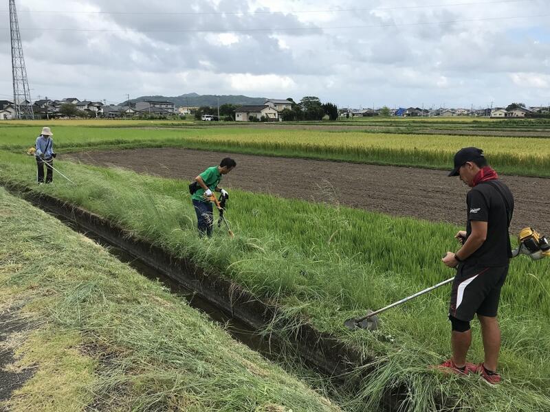 さて、下の写真は、5年生が米作りをしている田んぼの草刈りの様子です。6月の田植えのときに比べて、ずいぶん大きくなっています。これから、稲刈りまで田んぼの管理をしっかりしていき、おいしいお米をみんなで味わいたいものです。