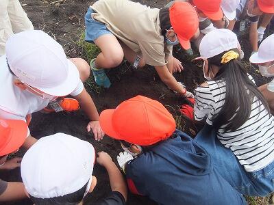 2年生は、春に植えたいもの収穫を行い、10月28日(水)にみんなでいただきました。思っていたほどの収穫はできませんでしたが、一人一個ずついただくことができました。技術員の甲斐さんがもってきてくださった焼き芋機で蒸しましたので、味が最高でした。