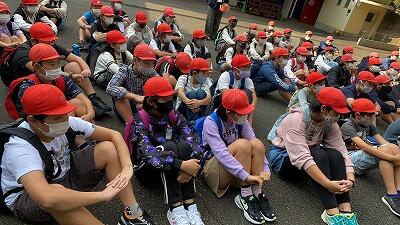 17時30分、宿泊先である「シェラトン・グランデ・オーシャンリゾート」に到着し、部屋に入ったようです。あまりにも高級すぎて、靴をどこで脱ぐのか困っているとか・・・。みんな元気で、これから、食事そして入浴です。修学旅行ならではの時間は、これからですね。