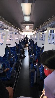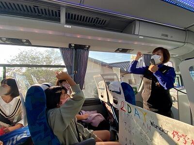 バスの中では、ゲームをしたり、話をしたりと楽しいひと時になっているようです。