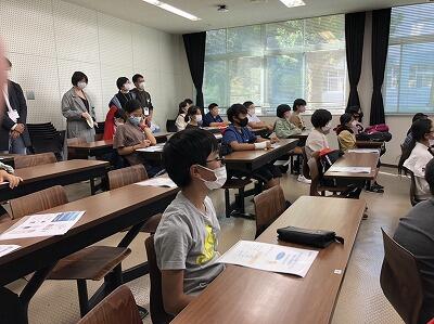 ビームタウンミラーです。地図を手がかりにクイズラリーをしています。とても広い敷地を、子どもたちは歩き回っています。学生さんにサポートしてもらいながら進んでいるようです。
