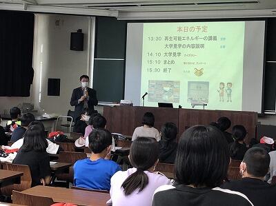 いよいよ最終目的地、「宮崎大学工学部」到着です。ここでは、太陽電池システム等の見学があります。しっかり学んでほしいと思います。