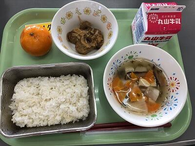 くり入り煮物 ひじきの酢の物 麦ごはん 牛乳
