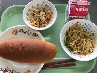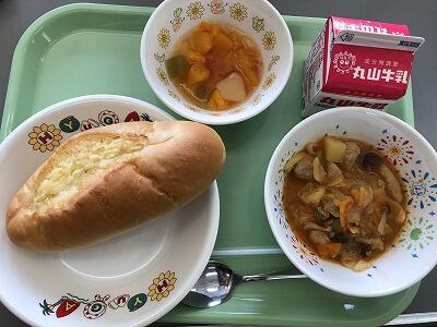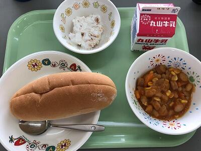今日は、コッペパンに、フルーツクリームを挟んで食べるように、コッペパンに切れ目が入っていました。