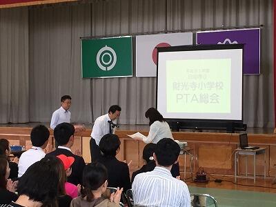 その後開催されたPTA総会、事前に準備していた椅子が足りなくなり追加するほど、これまた多くの方々にご出席いただきました。保護者、教職員合わせて総出席者数221名、本当にありがたいことです。動画とプレゼンテーションによる学校長の経営説明や新会長からのPTAの新たな挑戦のお話、読み聞かせ『どんぐりの会』感謝状贈呈等、限られた時間の中で、会はスムーズに進行していきました。