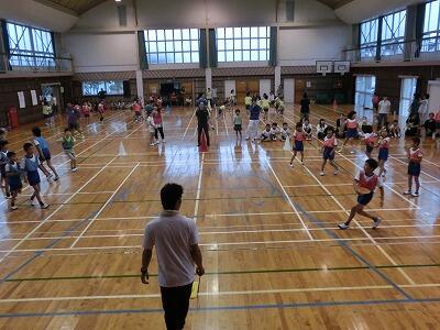 上級生が1年生に投げ方を教える姿や額に汗して一生懸命のフリスビーを追う姿などが見られ、楽しく仲良くゲームを通して心地よい汗を流していました。本大会の目的である、異学年交流や運動に親しむことが大いに達成された大会でした。明日からの学校生活にもこれらのことが生かされるとよいです。