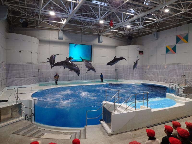 水族館では、ジンベイザメやたくさんの魚などに興味津々。