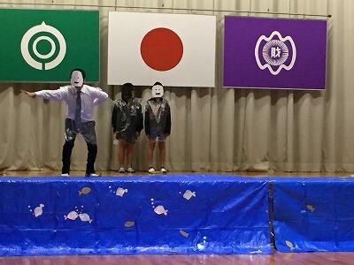 今週は、1組、2組それぞれが”自作劇”で海岸をきれいにすることの大切さを1~5年生に訴えました。どちらも随所にアイデアと工夫が散りばめられた見応えのある劇に仕上がっていました。