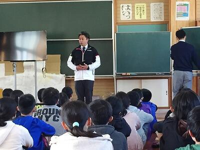2月21日(金)6校時、財光寺中学校からお2人の先生をお招きして6年生への中学校説明会を行いました。先生方からの中学校の学習、生活、それに向けての準備等のお話に、6年生は真剣な表情で聞き入っていました。6年生一人一人に「小学校卒業、中学校進学」ということが実感としてより強くなったのではないでしょうか。小学校生活も残り1ヶ月、中学校進学に向けての準備をスタートする時期ですね。