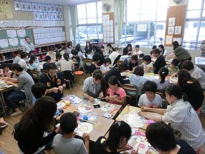 4年生は、うちわづくりで、こちらも親子で取り組む姿がみられました。