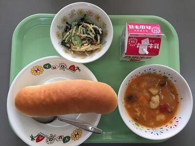 コッペパン 牛乳 トマト鍋 スパゲティサラダ