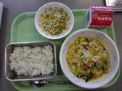 *今日の献立* 中華丼、牛乳、バンサンスー