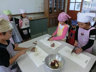 おいもはかたくて、切るときはみんな慎重に切っていました。
