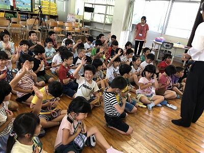 子どもたちは初めての聴診器を目の前にして心臓の音に驚いていました。