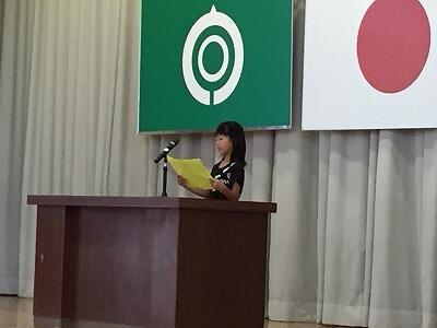 終業式では、まずはじめに校長先生が地域の方からのメッセージを紹介してくださいました。財っ子たちのやさしい行いをよく見て下さっているものが多くありました。その後、2年生と4年生の代表児童が1学期がんばったことを上手に発表しました。