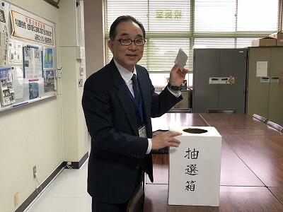 今年行われる東京2020オリンピック聖火リレーサポートランナーの募集が4年生以上にあり、本校からは38名の応募がありました。財光寺中校区で4名の枠があったため、1月16日(木)に財光寺小、財光寺南小、財光寺中の校長が集まり、厳正に抽選を行いました。その結果、本校からは2名が選ばれました。