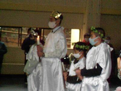 12月24日(木)は、2学期終業の日です。2校時には、放送による終業式を行いました。まず、校長が、今年1年を表す漢字「密」「思」「鬼」「滅」についての話をし、「来年は、密を避け、いろんな人のことを思い、様々な鬼を退治(滅)してほしい」と伝えました。その後、1年の増田幸大(ますだゆきひろ)くんと3年の平田梨緒(ひらたりお)さんが、2学期がんばったことや思い出に残っていること、3学期がんばりたいことについて、発表しました。2人とも、堂々としていて立派な発表でした。